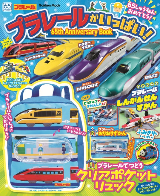 【付録のクリアポケットつきリュックはお出かけが増える季節にぴったり】プラレール65周年記念『プラレールがいっぱい! 65th Anniversary Book』発売!