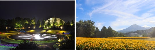 日本最大級のフラワーパークとっとり花回廊には、フラワードームや展望回廊、花の丘、天候に左右されず年中、花や植物を楽しめる大温室や展示館などがあります。8月の夜には、展望回廊が囲む約8万平方メートル の広大な庭園を約14,000個の照明が彩る、幻想的な夜間庭園「ムーンライトフラワーガーデン」が広がります。花と月明かりのような柔らかい光に包みこまれた庭園は、宵のデートスポットにぴったりです。