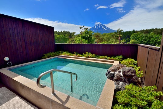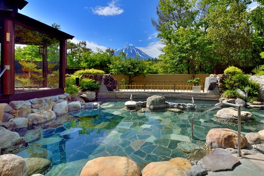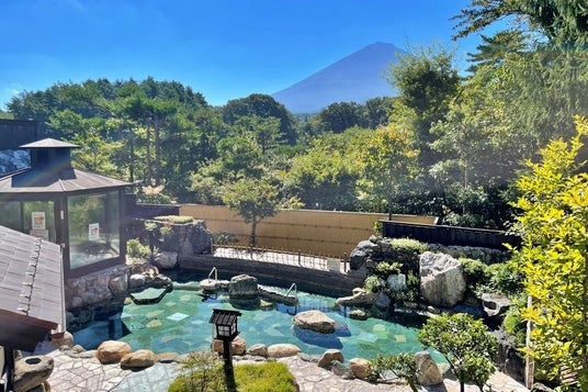 目の前に富士山を眺めながらお風呂に浸かることができる「霊峰露天風呂」や「パノラマ風呂」の他、炭酸泉や洞窟風呂など全16種類のお風呂が揃う日帰り温泉施設です。館内には、お風呂の他にも、日頃の疲れを癒してくれるボディリフレッシュルーム「おあしす」や、地元山梨の食材を使用した料理が味わえるお食事処の「ふじざくら」、SL列車が食事を運ぶ個室のお食事処「お狩場」もございます。他にもお風呂上りにゆっくりお寛ぎいただける無料休憩室、迫力満点の富士山を眺める有料休憩室もございます。お風呂でリフレッシュした後は、館内の充実した設備でくつろぎのひと時をお過ごしください。