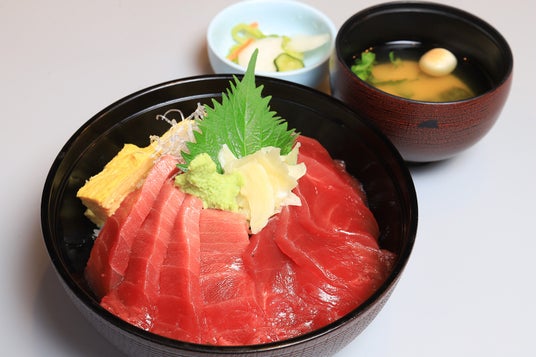 梅ひじきごはん/小鉢/漬物/かき揚げ/まぐろの山かけ