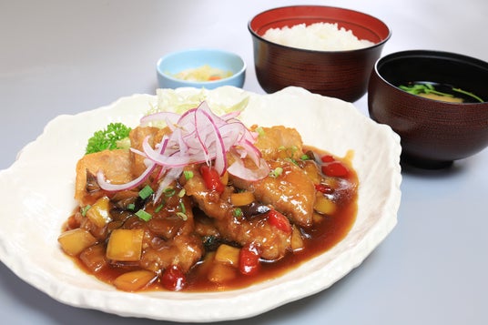 「鰻の香味丼」は、梅ひじき和えご飯の上に、笹打ちねぎ、みょうが、大葉を添えた丼。口に入れた瞬間に風味豊かで爽やかな味わいを堪能することができます。富士桜ポークとパプリカやナス、ズッキーニなどの夏野菜を黒酢で和えた黒酢餡かけ定食は、黒酢に含まれるクエン酸や酢酸が夏バテ予防に最適です。