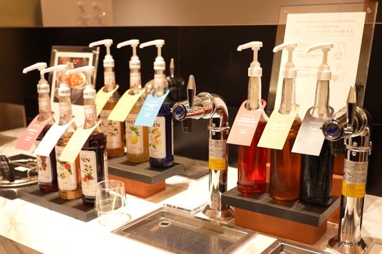 約12mのインペリアルドリンクバー、ドリップブリューの本格珈琲からエスプレッソアレンジラテ、12種の茶葉などカフェ専門店に負けないカフェメニューから、モナン社のシロップで楽しむフレーバーソーダやフルーツジュースなど全48種の味わいをご自由にお楽しみ下さい。