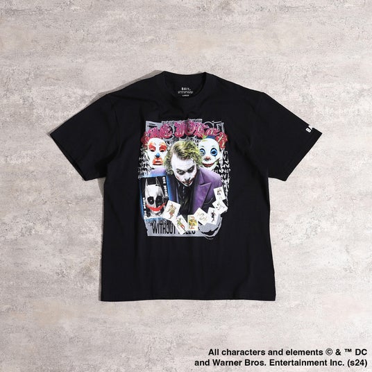ゴッサム・シティに舞い降りた究極の悪であり、犯罪こそが最高のジョークだと不敵に笑う、その男の名はジョーカー。そんなジョーカーを象徴するマスクやトランプに加え、印象的な笑い声を表す「HAHAHA」のテキストがデザインされた1着です。