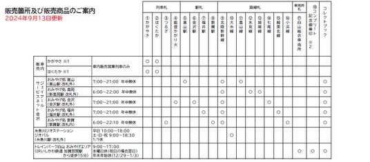 ※1 1.かがやき、2.はくたかは、車内販売営業を行うかがやき号・はくたか号で販売となります。
