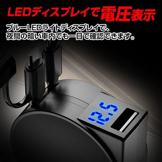 ブルーLEDライトディスプレイで、夜間の暗い車内でも一目で確認できます。愛車のリアルタイムな電圧をチェックできます。