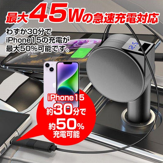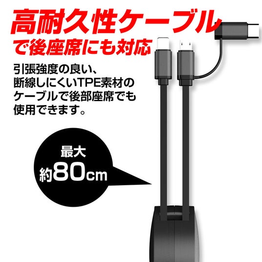 ◆ケーブル収納の煩わしさを解消!巻き取り式カーチャージャー
