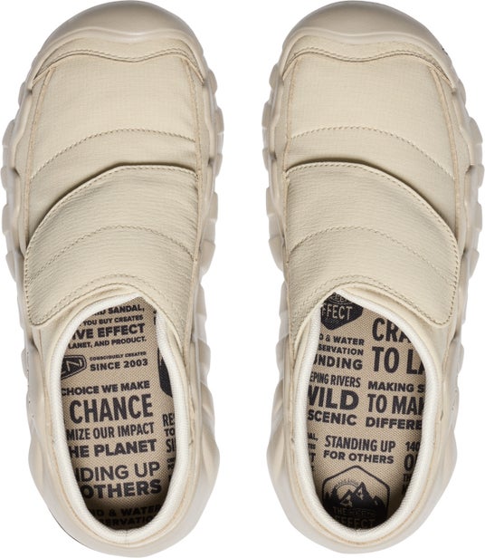 他のKEENフットウェアと同様、HYPOWSERコレクションは<CONSCIOUSLY CREATED:地球と人にやさしいツクリカタ>でつくられています。永遠の化学物質と呼ばれる、発ガンリスクなど多くの健康被害を引き起こす可能性があるとされる有機フッ素化合物「PFAS」不使用、フットベッドは抗菌剤不使用、そして、キルティングナイロンアッパーは100%リサイクルP .E.T.素材を採用しています。