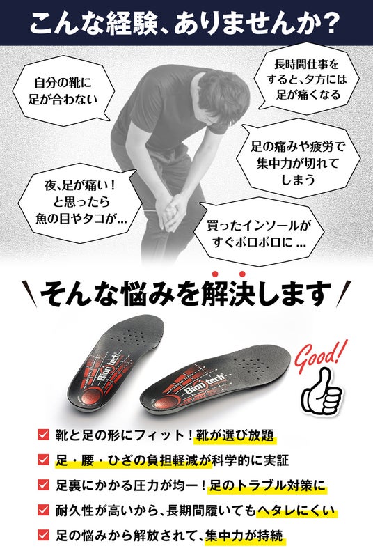 自宅で簡単に自分の足に合ったインソールを作ることができます!足の形にぴったりフィットすることで、足・腰・ひざの負担を軽減し、ランニングやウォーキング、立ち仕事を快適にすることができます。