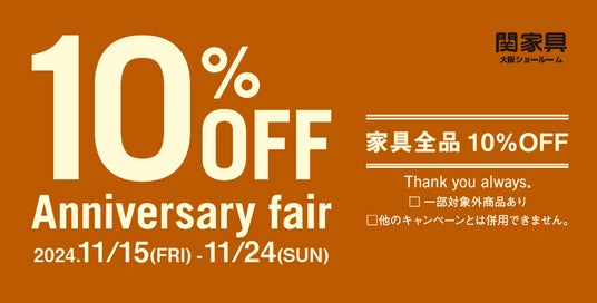【関家具 大阪ショールーム】13th Anniversary fair、11月15日よりスタート!