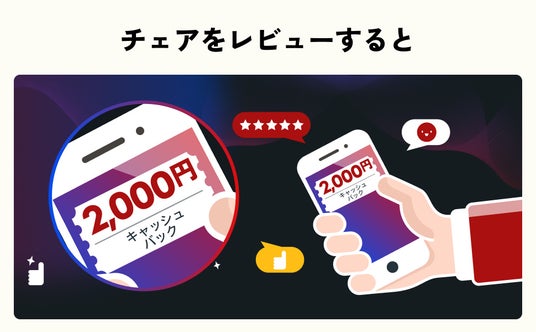 キャンペーン期間中に対象のチェアをご購入いただき、レビューをご投稿いただくと、抽選で10名様に2,000円のキャッシュバックをいたします。