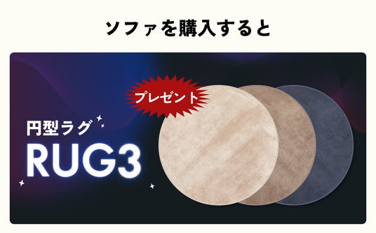 リクライニングソファのご購入特典として、円型ラグRUG3をプレゼントいたします。