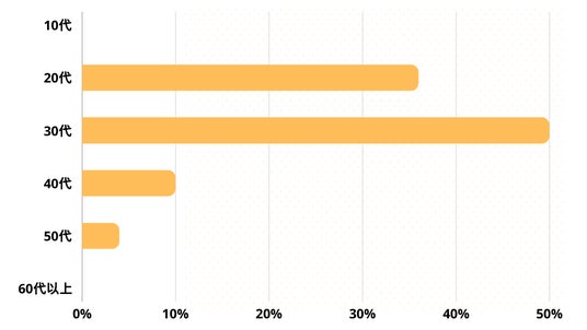 調査対象:18歳以上のプログラミングスクール受講者且つ転職成功者限定(20代:36%、30代:50%、40代:10%、50代:4%)