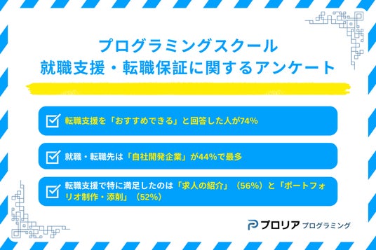「プログラミングスクール転職支援満足度調査」結果発表!7割超が「おすすめできる」と回答!IT未経験からのキャリア転換に好影響