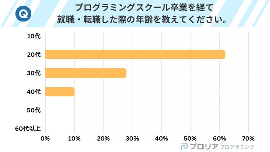 プログラミングスクール卒業後、就職・転職した際の年齢を教えてください。