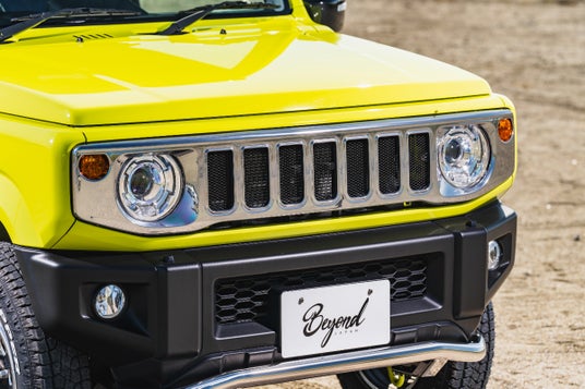 - ステンレス素材を使用:質感の高さが際立つ鏡面仕上げで、ジムニーのフロントをより力強く演出。