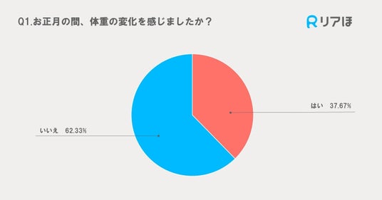 37.67%の回答者が「はい」と答えました。約4割の人が体重の増加を実感している一方、62.33%の人は「いいえ」と答え、正月太りに対する意識や影響が個人によって異なることが分かりました。