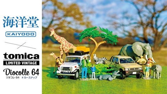 海洋堂×トミカリミテッド ヴィンテージ 初コラボ「ジオコレ64#カースナップ」2025年発売!ハイクオリティ動物フィギュアとミニカーで映え写真を撮ろう!