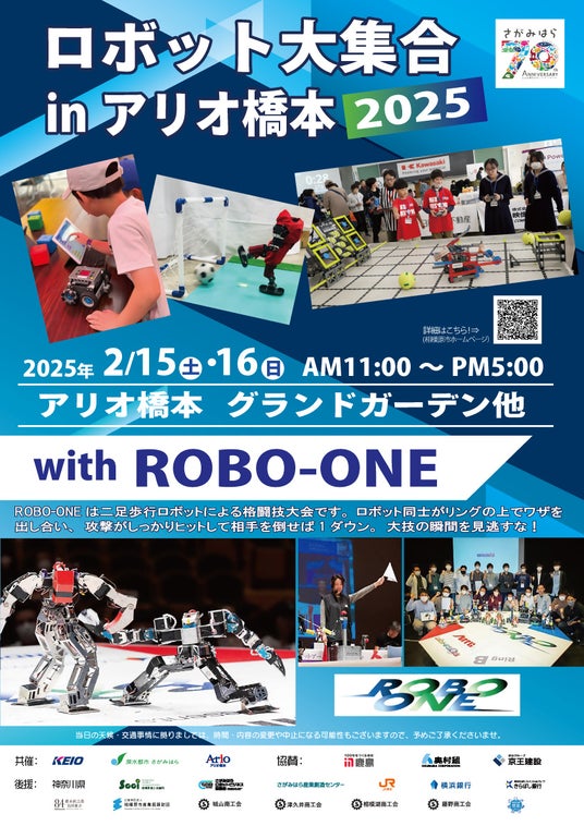 相模原市、京王電鉄株式会社及びアリオ橋本は、市民の皆様をはじめとした多くの方々に、ロボットとの触れ合いや体験を通じ、よりロボットを身近に感じていただくことを目的として、「ロボット大集合! in アリオ橋本2025 with ROBO-ONE(ロボワン)」を開催します。