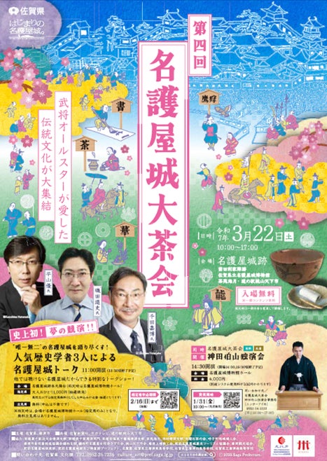 豊臣秀吉が築き、全国から150を超える武将オールスターが集結した「肥前名護屋城」を舞台に、3月22日(土曜日)『名護屋城大茶会』を開催!歴史界のビック3も登場!