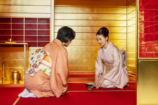 豪華絢爛な「黄金の茶室」に入ってお茶を飲むことができるほか、竹でつくられた質素な「草庵茶室」の中でお茶を点てる体験も実施します(数量限定)。