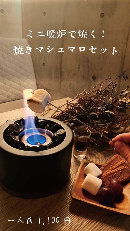 暖炉で焼きマシュマロセット各席に置かれるミニ暖炉で、焼きマシュマロを作る体験ができる人気の商品を、札幌すすきの中央店でもお楽しみいただけます。