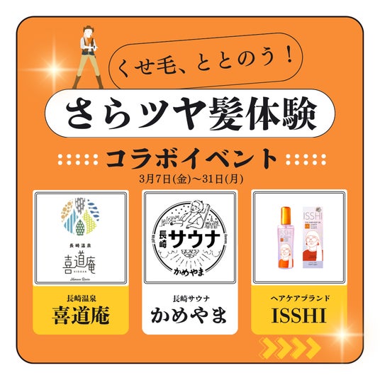「カラダととのう、くせ毛ととのう。」さらツヤ髪体験!長崎温泉喜道庵×長崎サウナかめやま×ISSHI(イッシ)トリプルコラボキャンペーン開催!!