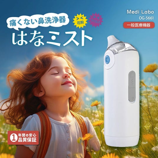 健康機器の企画・開発を手掛ける株式会社惣田製作所(本社:滋賀県彦根市、代表取締役社長:惣田 亘)は、自社のオリジナルブランドであるMedi Labo(メディラボ)より、10~20マイクロメートルの極微細なミスト(マイクロミスト)で鼻腔内を洗浄する、電動鼻洗浄器「はなミスト」の販売を開始しました。