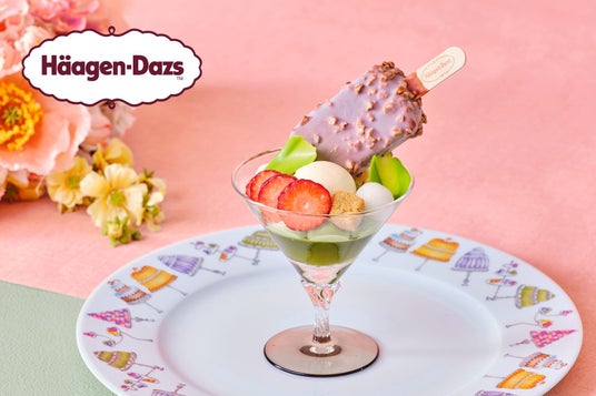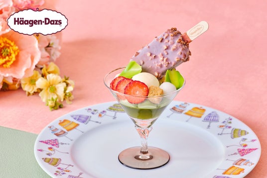 セイボリーは、旬の春キャベツのクリーミーなスープや、米粒状のパスタを使用した海老といちごとブロッコリーのサラダ、ラズベリーブリーチーズのビーツブレッドオープンサンドなど、春らしい彩りの3品をご提供します。 ■ハーゲンダッツ アイスクリームをダイレクトに味わえる抹茶のパフェ(オプション) 4月26日(土)~6月29日(日)の期間限定で、抹茶ジュレにいちごやマスカルポーネのムース、きな粉を使用したクッキーや大納言のかのこ豆などを使用し、ハーゲンダッツ バー 芳醇ティラミスクランチを乗せた和洋折衷のパフェが登場します。