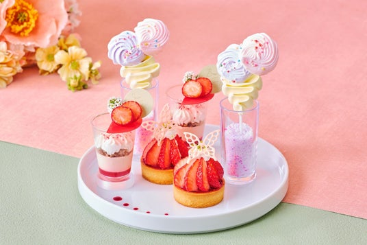 苺パンナコッタのヴェリーヌ/苺のタルト/メレンゲロリポップ/ハーゲンダッツ グリーンティー/ハーゲンダッツ ストロベリーの苺クッキーサンド/ハーゲンダッツ バニラのシューアイス <セイボリー>