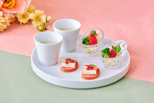 <デザート>苺パンナコッタのヴェリーヌ/苺のタルト/メレンゲロリポップ/ハーゲンダッツ グリーンティー/ハーゲンダッツ ストロベリーの苺クッキーサンド/ハーゲンダッツ バニラのシューアイス <フード>豆腐ブレッドのテリヤキハンバーガー/スモークサーモンとアボカドのハンバーガー/レッドフライドポテト/彩り野菜のガーデンサラダ <スコーン&コンディメント>プレーンスコーン/ストロベリー&ラズベリーのスコーン/