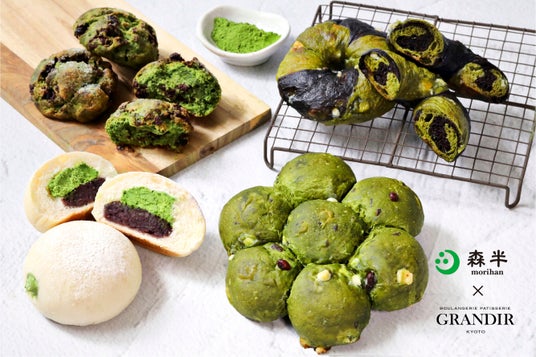 【初!森半コラボ】京都の老舗ベーカリー「グランディール」より茶師が厳選した一番茶を使用した「京生ちぎりパン」をはじめベーグル、スコーン、クリームパンなど香り高い宇治抹茶の味わい広がるコラボパンを新発売