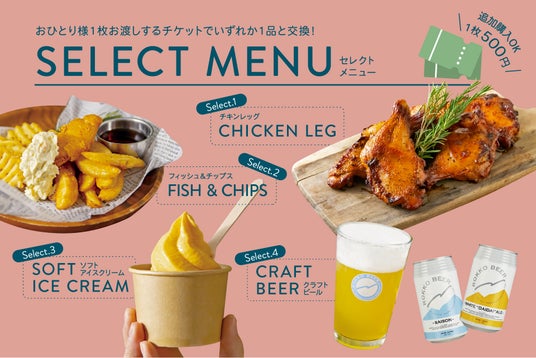 昨年まで好評いただいていたメインのローストチキンが、今年は4種のメニューから選んで楽しめるセレクトメニューに進化! おひとり様に1枚お渡しするチケットでお好きな1品と交換。 チケットは追加購入(1枚500円)もOKですので、ローストチキンレッグ2本も3本も食べちゃうという夢のような豪遊も可能ですよ! ■セレクトメニュー ・うめだ阪急ビアガーデンの定番!「ローストチキンレッグ」 ・ビールにめちゃ合う!「フィッシュ&チップス」 ・お肉よりスイーツ!というアナタに「ソフトアイスクリーム」 ・ひと味ちがうビールを「クラフトビール」