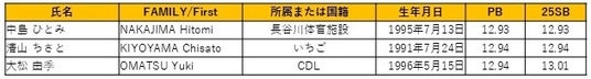 女子100mハードルには、織田記念決勝で日本歴代5位となる12秒93の自己記録で優勝した中島ひとみ(長谷川体育施設)、日本歴代6位の12秒94の自己記録をもつ清山ちさと(いちご)、大松由季(CDL)の参戦が決定。