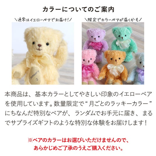 ■ 何色が届くかお楽しみ!月ごとのラッキーカラーベアをランダム封入