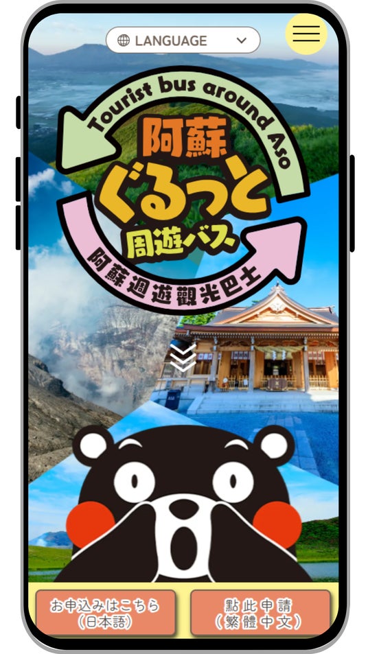 今年1月~3月に、熊本県が「MaaS推進事業」の一環として実証運行し、国内海外問わずご好評をいただきました「阿蘇ぐるっと周遊バス」を、7月より装いも新たに熊本市内出発としてリニューアル。よりご参加しやすい内容となって再販売いたします。