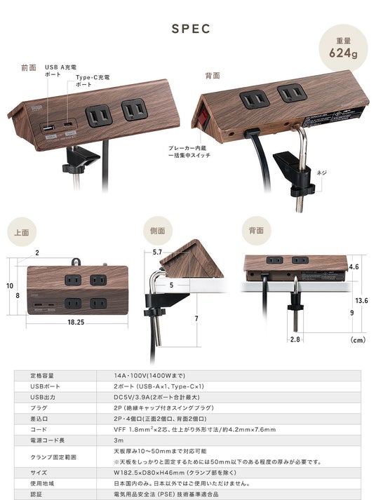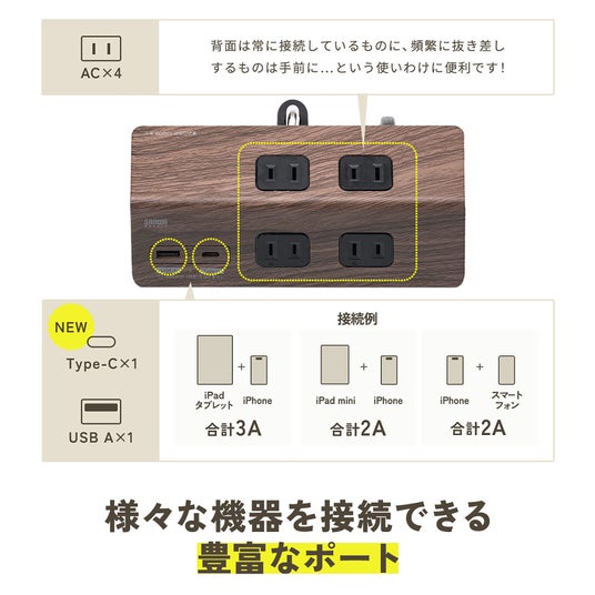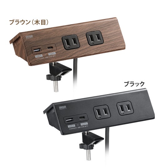クランプでガッチリと机に固定できる!Type-C & USB Aポート搭載の電源タップの新色「ブラウン」を7月3日に発売