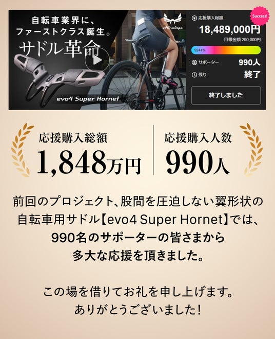 5mm厚のクッション標準装備で快適な乗り心地!股間を圧迫しないサドル第二弾!Makuakeに登場