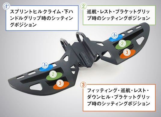 これにより上り坂や下り坂、スピードを上げる時などでライディングポーズを変えても、サドルは常に坐骨を水平で支えるため体重移動が非常に楽