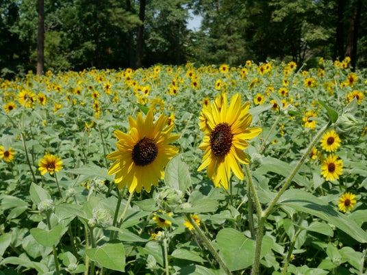- 見頃は8月中旬まで、青空と緑に映える元気な黄色。