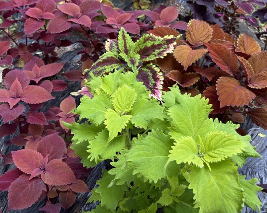 - シソ科の多年草(日本では一年草)、葉の色彩が主役。