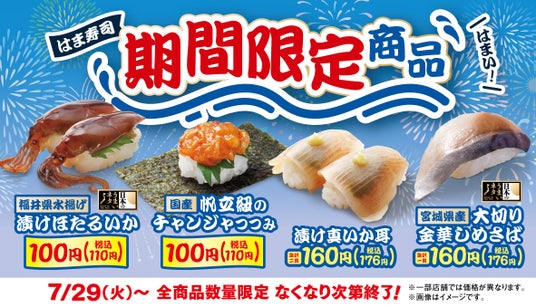 はま寿司「夏の旨ねた祭り」開催!漬けほたるいか110円&金華しめさば176円など限定4品登場!