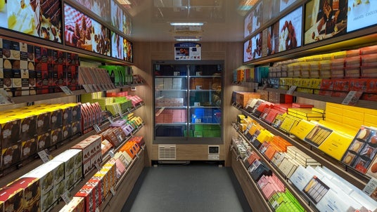 ロイズの移動販売車は、北海道・当別町の工場から全国へ美味しいチョコレートをお届け。宮城県大崎市や愛媛県宇和島市など、姉妹都市を中心に東北から九州まで巡回します。車内では、定番商品から季節限定品、京都限定の「ロイズ京都」スイーツまで、最大約90種類を販売。コンパクトなスペースながら、北海道物産展を超える品揃えで、チョコレート好きにはたまらない体験です!