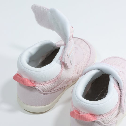 「MOONSTAR Carrot®」HI!!シリーズの「CR F164HI」は、ブランドの代表モデル「コンテ」のキッズデザインを継承したファーストシューズ。柔らかなメッシュ素材と大きく開く甲バンドで、赤ちゃんの小さな足にも簡単に履かせられる設計が特徴です。親子でお揃いコーデも楽しめる可愛らしいデザインは、日常使いや特別な日にぴったり!