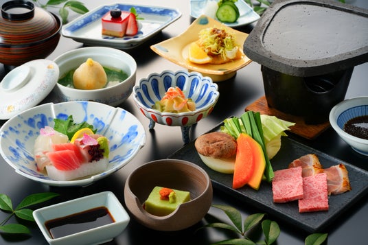 - 夕食:九州産黒毛和牛の会席料理(18:00~または19:30~、指定制)。
