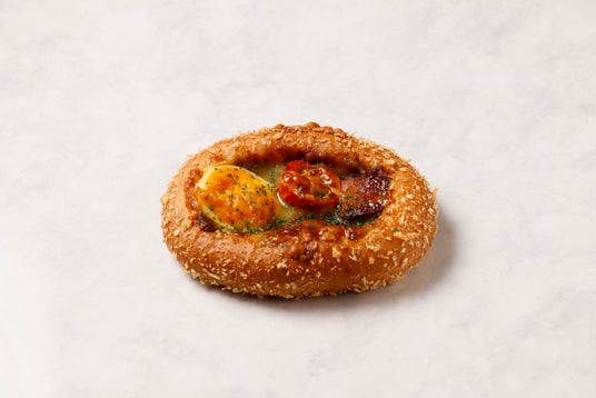 - 焦がしカレー×ポークエッグ:角煮と卵の旨味、チーズのコクが広がるカレーパン。