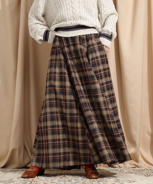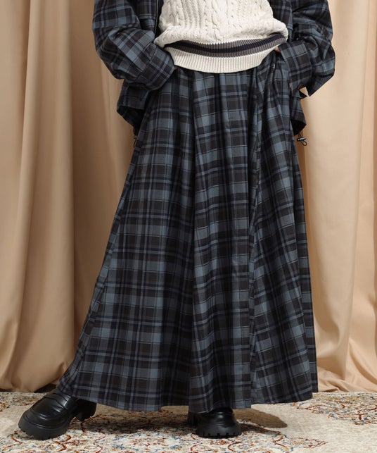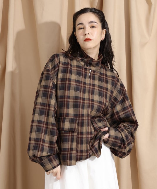 スタンドブルゾンとフレアスカートは、無地とチェック柄でセットアップとして着用可能。トレンドのボリュームパンツも登場します。