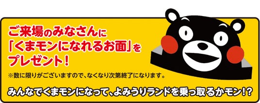 - お面配布: 来場者全員に「くまモンになれるお面」を配布(無くなり次第終了)。みんなでお面をつけて、園内をジャックします!