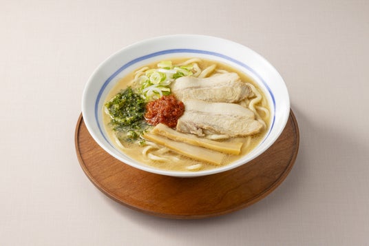 多加水でもしっかりコシのある、もちもち食感の麺。龍上海の店舗と同様の味噌を使用したスープは、鶏の旨味と煮干しの風味が際立ち、にんにくの香りが効いた辛味噌で、最後までクセになる味わいに。