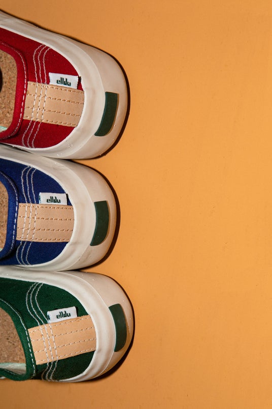 TOE-EASY 「トゥーイージー」は、エルドゥのエッセンスを注ぎ込んだデッキシューズスタイルのスニーカーで、シンプルでありながら洗練された一足です。深みのあるカラーリングの6オンスコットンキャンバスをベースに、3本の精緻なステッチが施されています。ベジタブルタンニンレザーを使用した部分で、着脱時の安定感を向上させ、ロゴタグとブランドカラーのグリーンタブがスタイリッシュなアクセントを加えます。さらに、2重のトゥーガードがつま先をしっかり守り、実用性とデザイン性を両立させています。