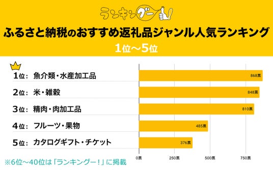 「ふるさと納税」おすすめの返礼品ジャンルランキングを発表!1位は『魚介類・水産加工品』に決定!